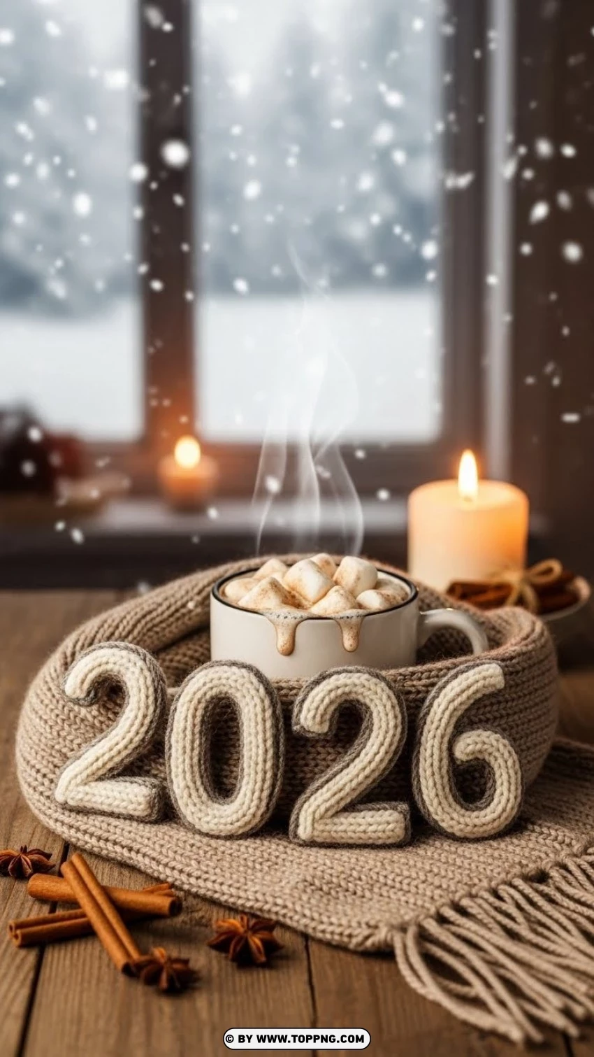 Download Cozy Winter 2026 Greeting with Knitted Textures and Hot Cocoa Png in high resolution (768x1365 Px), free for commercial use. This 180.7KB image with a transparent background is ideal for winter greeting, 2026 holiday, and knitted texture. Compatible with Photoshop, Illustrator, and other editing tools. Discover more high-quality images in the Clipart category and take your projects to the next level with premium resources at no cost!