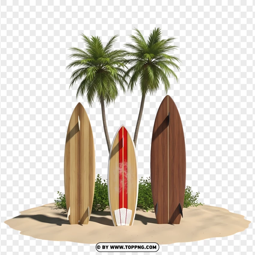 Download Vintage Surfboards on Tropical Beach with Palm Trees Png in high resolution (4096x4096 Px), free for commercial use. This 7.6MB image with a transparent background is ideal for surfboard, vintage surfboards, and tropical beach palm. Compatible with Photoshop, Illustrator, and other editing tools. Discover more high-quality images in the Clipart category and take your projects to the next level with premium resources at no cost!