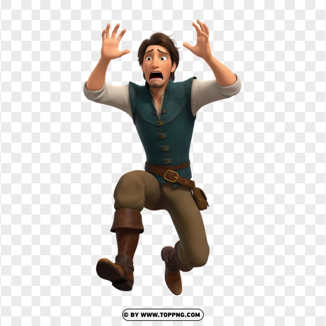 flynn rider running in panic with flailing arms