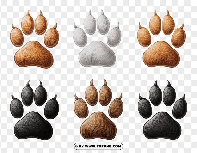 set of coyote paw prints in various colors png