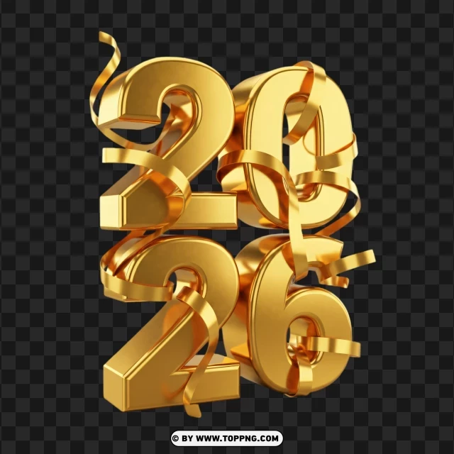 gold glitter 2026 new year typography with flowing ribbon effects
