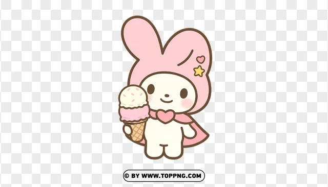 pastel pink bunny holding icecream in cute style