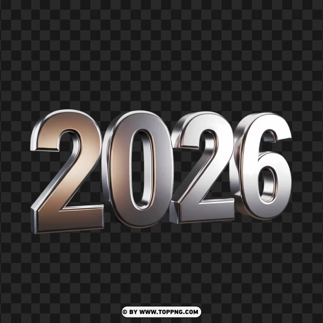 3d silver chrome 2026 with gold ribbon dual metal effect
