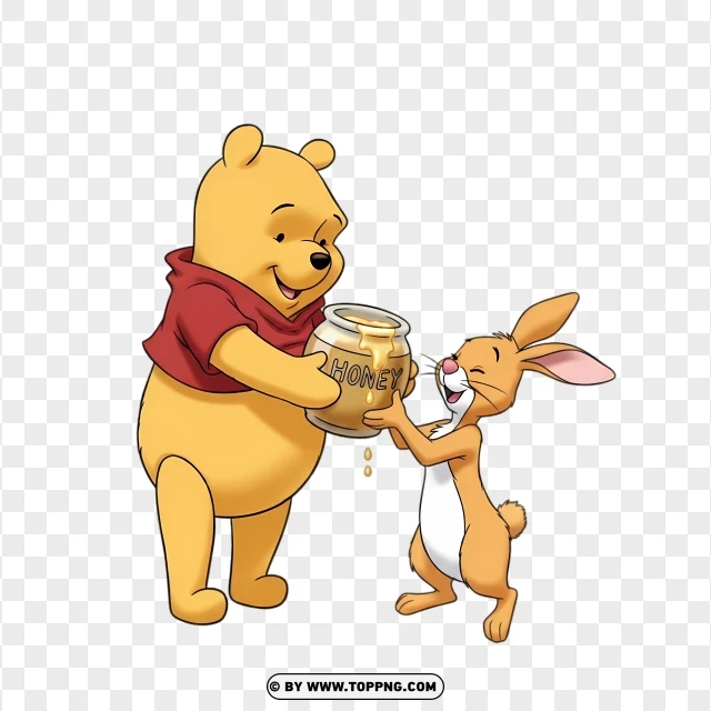pooh and rabbit sharing honey jar