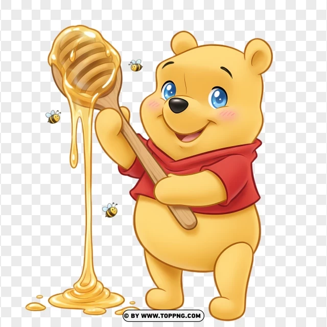pooh bear holding honey spoon kawaii style