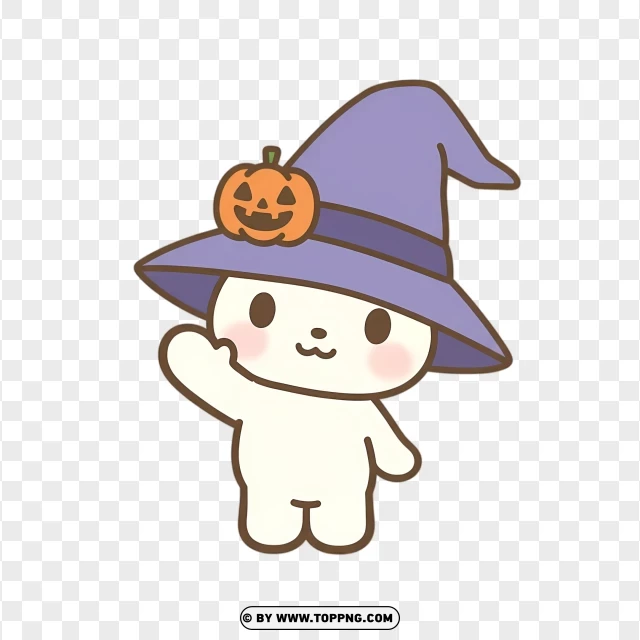 kawaii halloween bunny wearing purple witch hat