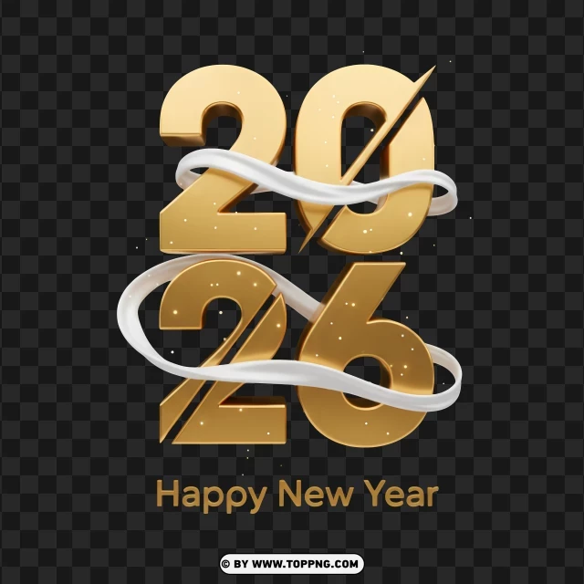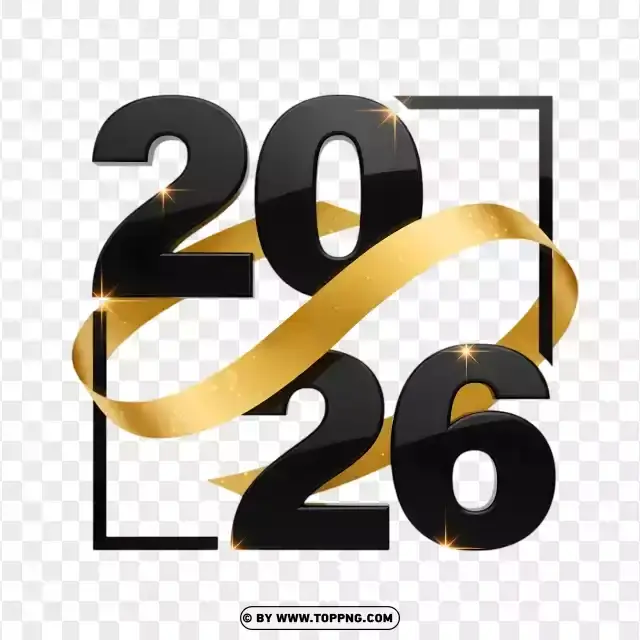 3d black glossy 2026 wrapped in metallic gold ribbon sparkle