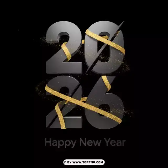 3d dark silver 2026 with gold glitter ribbon spark effect card