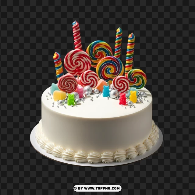 white cream cake with decorative candy toppings