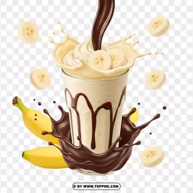 Banana Shake With Rich Chocolate Drizzle png image and clipart