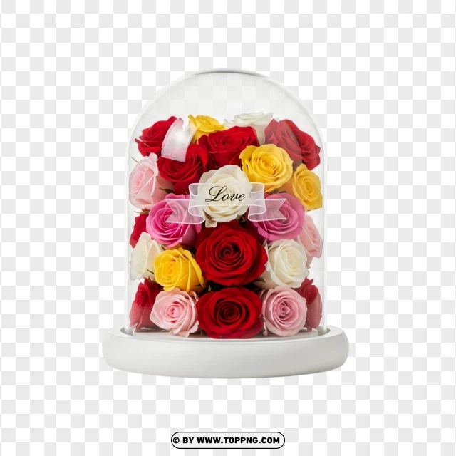 mixed roses in glass dome love display