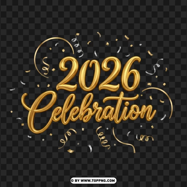elegant 2026 new year graphic with gold party popper and confetti