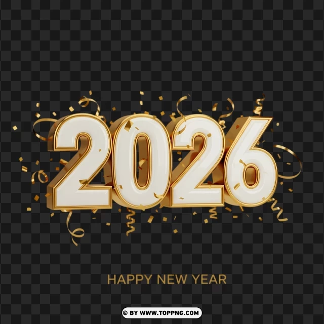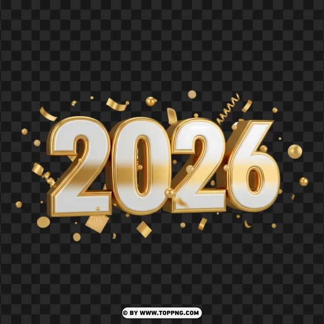 shiny 3d 2026 new year with gold confetti and party popper
