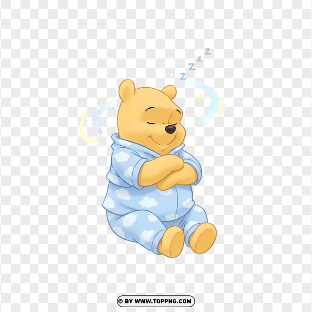 winnie the pooh sleeping peacefully in blue pajamas
